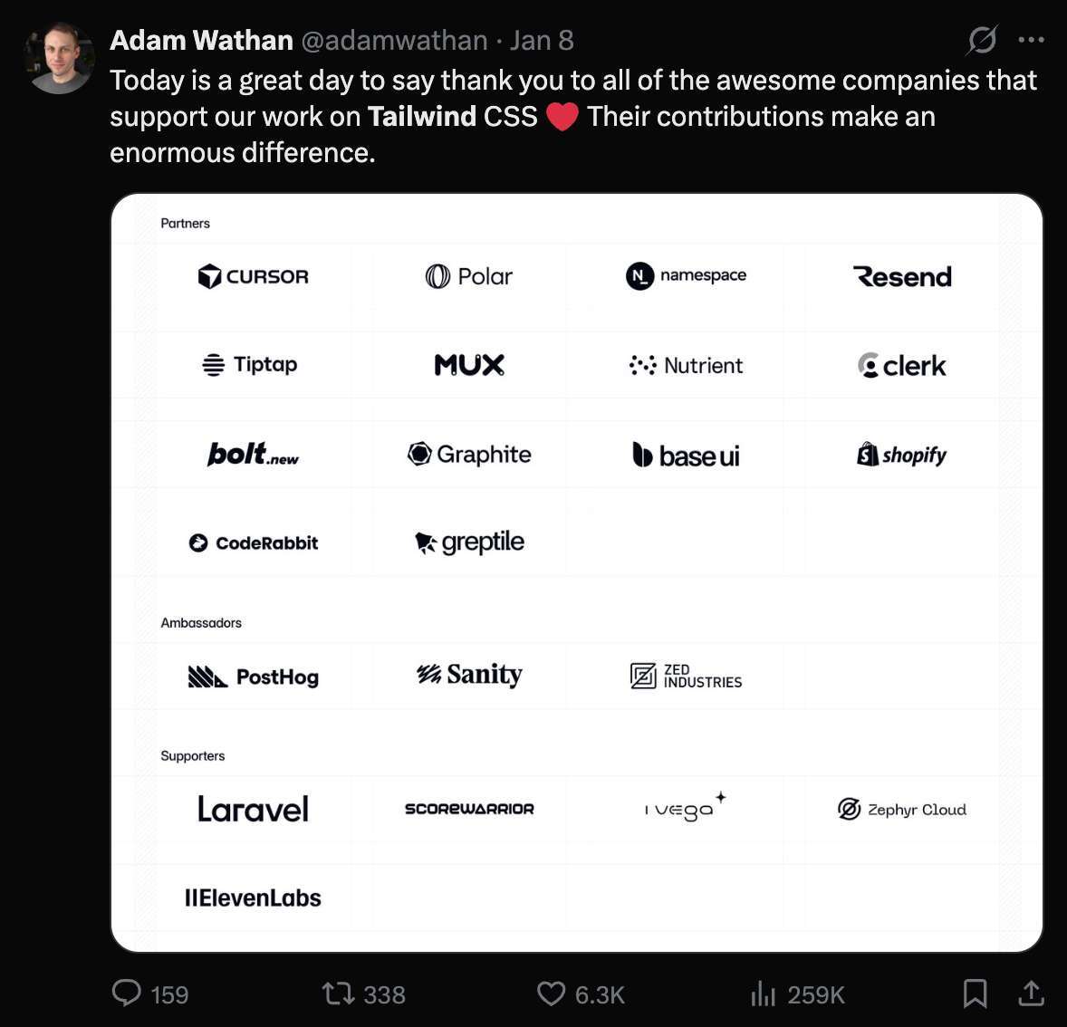 Tailwind Labs layoffs spark industry-wide rescue mission: Tailwind CSS creator Adam Wathan shocked the dev community this week, revealing he had to lay off 75% of his engineering team. Despite record usage, AI coding agents caused an 80% revenue collapse by diverting traffic away from official documentation—the project's main revenue generator. Within 48 hours, a massive rescue effort mobilized: Vercel, Google, Lovable, and others stepped in as official sponsors to sustain the project.