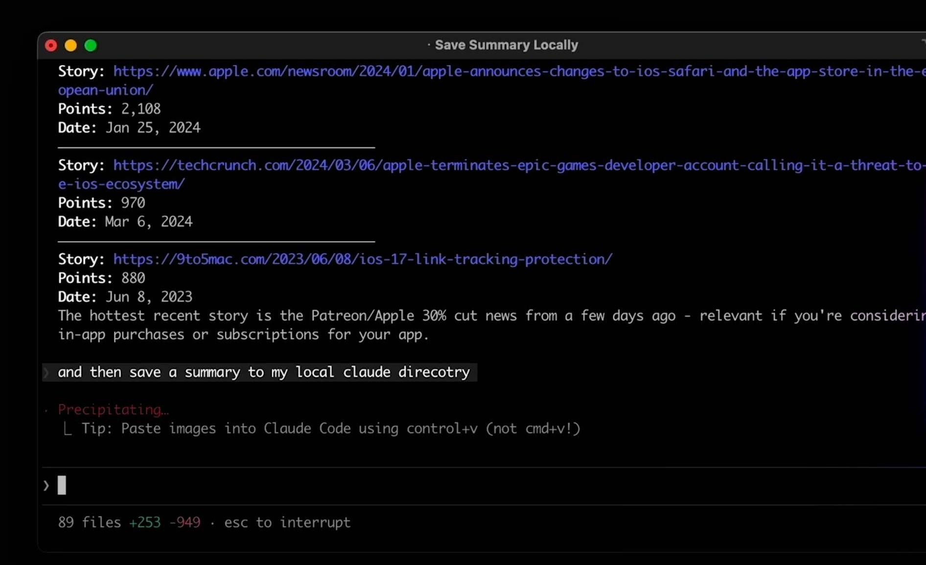Extend this fetch-hackernews skill to also pull from Apple developer newsClaude updated the skill to incorporate the new source. This concept works for any repetitive task: from running test suites to generating changelogs or deployment checklists. Just run through the workflow once, ask Claude to save it, and you’ll have a custom slash command ready for future sessions.
