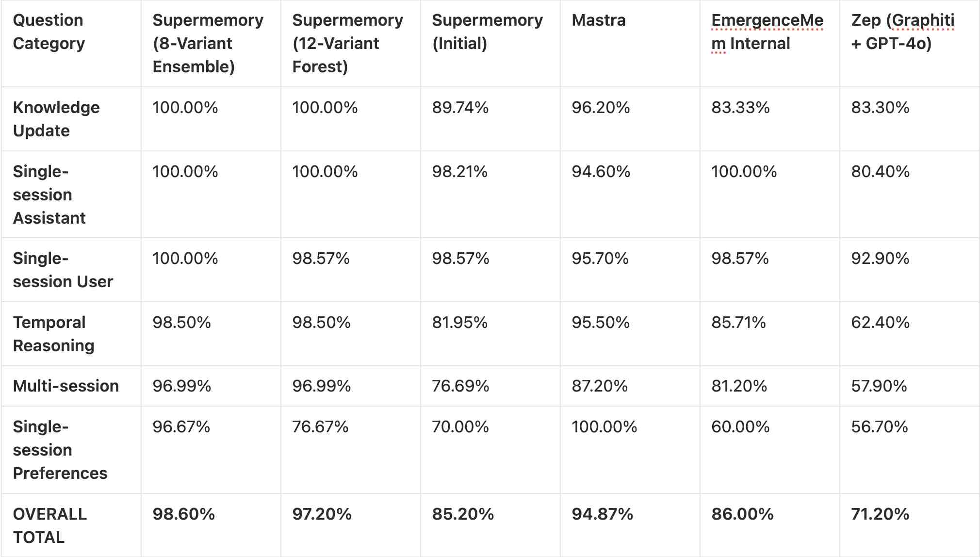 Supermemory's architecture vs. every major competitor.